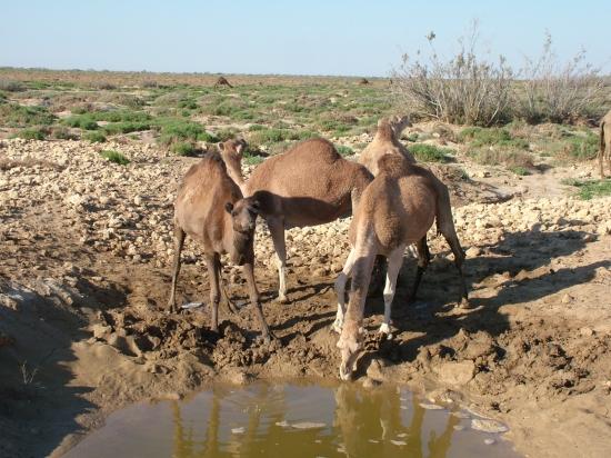 Palmeraies palmeraies, puis désert où des hordes de 4*4 prennent le relais des cars, premiers dromadaires (qui eux aussi traversent quand ça leur chante avec un regard dédaigneux ; blerrrrrrrrrrrrruuuuuuuuuuuuuuu !)