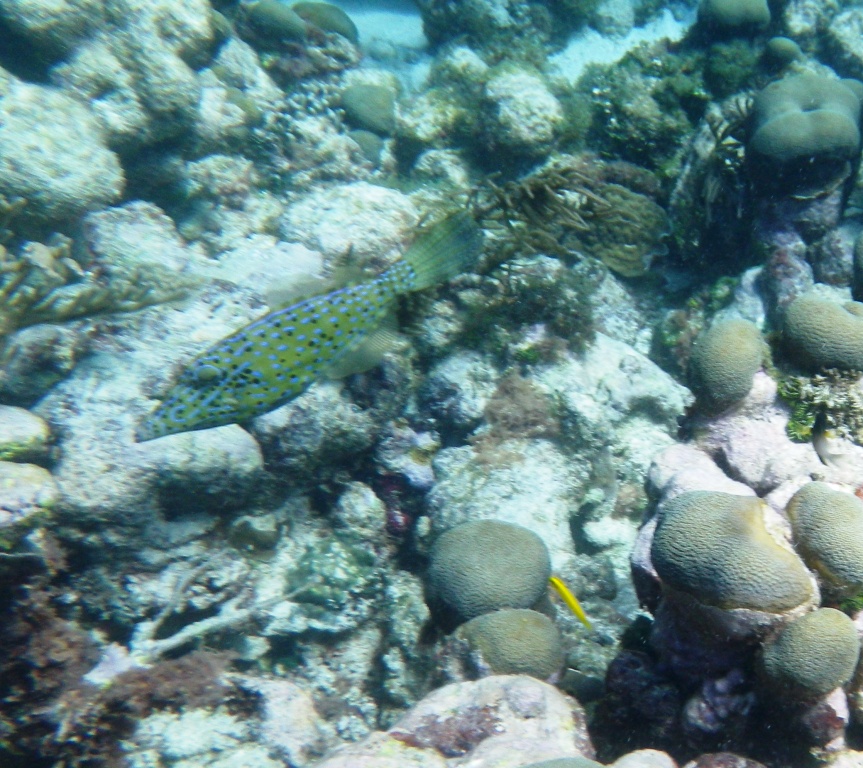 C’est parti pour une petite excursion sur le reef ! Superbe visi ! mais voilà il faut passer une passe avec un courant du diable et de la houle ; je me fait un essoufflement !!!!!!!!!! Retour tranquille avec le courant à l’annexe non sans profiter du paysage !