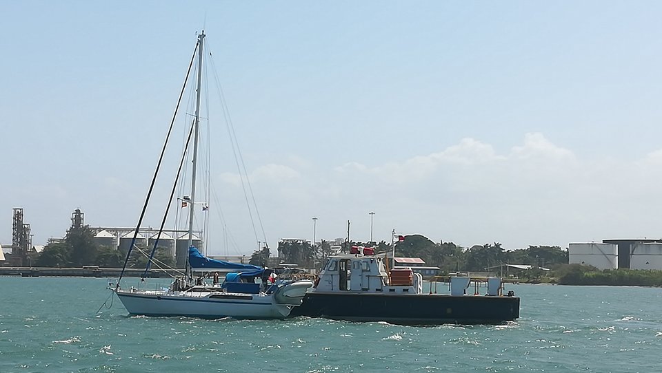 Formalités d’entrée ; 55$ la nuit ouffffff! Aller au boulot ; descendre les poubelles de plus d’un mois même en faisant attention ça en fait qq unes, Sortir toute la chaîne et nettoyer le pont et la baille à mouillage.
