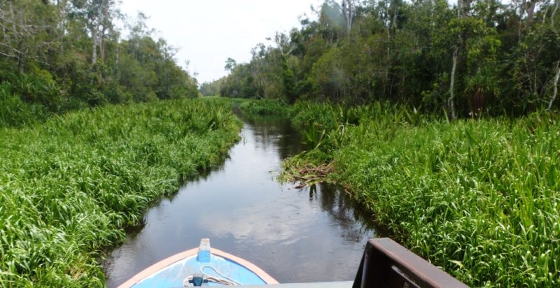 Remontée de la rivière le matin du dimanche jusqu’à la ville de Kumai.