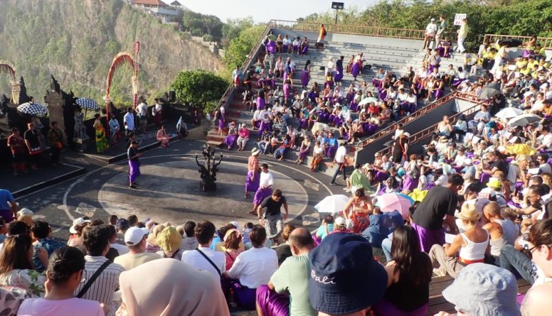 Mardi 8 ; Visite guidée plage de surf plein Sud et soirée théâtre local au temple de Uluwatu où sont installés 6 familles de macaques de 50 à 100 unités chacune cela sur 11ha, ces singes sont chapardeurs les lunettes les téléphones tout ce qui peut être pris des mains on a assisté 3 cas devant nous , ils sont super rapides sans violence !!!