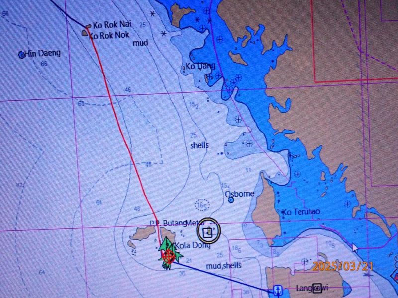 Lundi 24 Mars ; En route vers 6h30 pour rejoindre Langkawi, retour en Malaisie ! Mouillage dans la baie de Kuah vers 16h.
