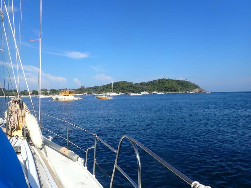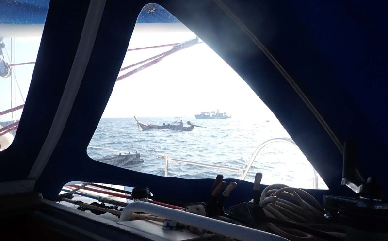 Dimanche 1er Mars ; En route vers 7 heures pour 46 miles sans ou peu de vent portant ! Atterrage vers 16h dans la baie encombrée de Kolipé !