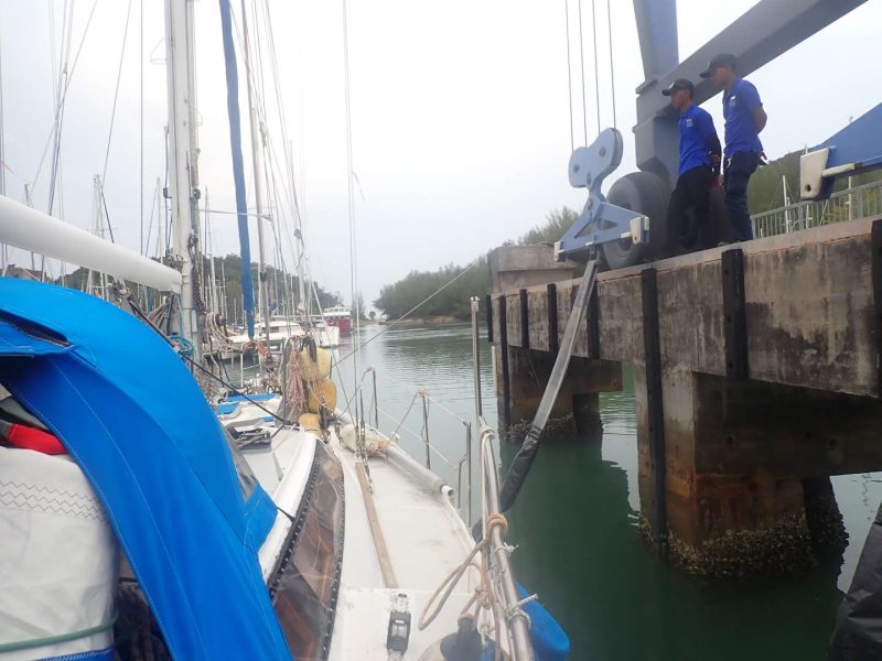 Mercredi 2 ; Opération mise au sec ! Manœuvre au top , sortie impec, les gars grattent un peu la coque car les coquillages sont bien là en 4mois !!!!!!!!! ça craint ! puis karcher et direction la place juste en face de l’an dernier !